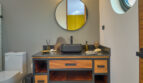 Upstairs are two generous bedrooms and two large bathrooms. Each is similar, yet unique, and both bedrooms could be considered primaries. Good design choices are apparent from the first step where a one of a kind floor combining glass and wood with concrete for a spectacular, yet practical floor which is also the ceiling of the kitchen below. The use of triple pane glass inserts in the floor brings light to the main floor which would otherwise could lack natural light in the kitchen. Once again, the seller/builder’s experience in Merida shines though with this innovative solution to a common problem.